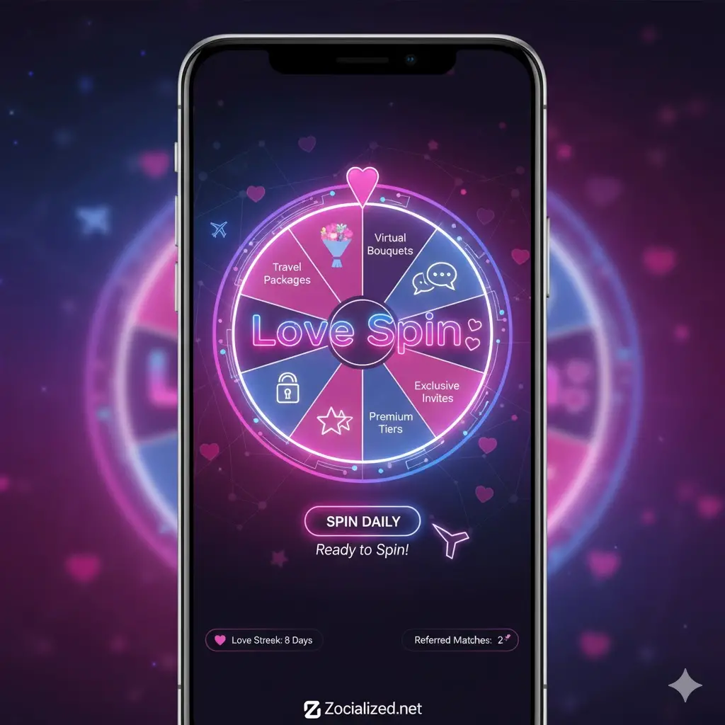 Love Spin is your daily gateway to exclusive perks, personalized dating boosters, and lucky access to premium experiences on Zocialized. With just one spin a day, members can unlock exciting rewards like: