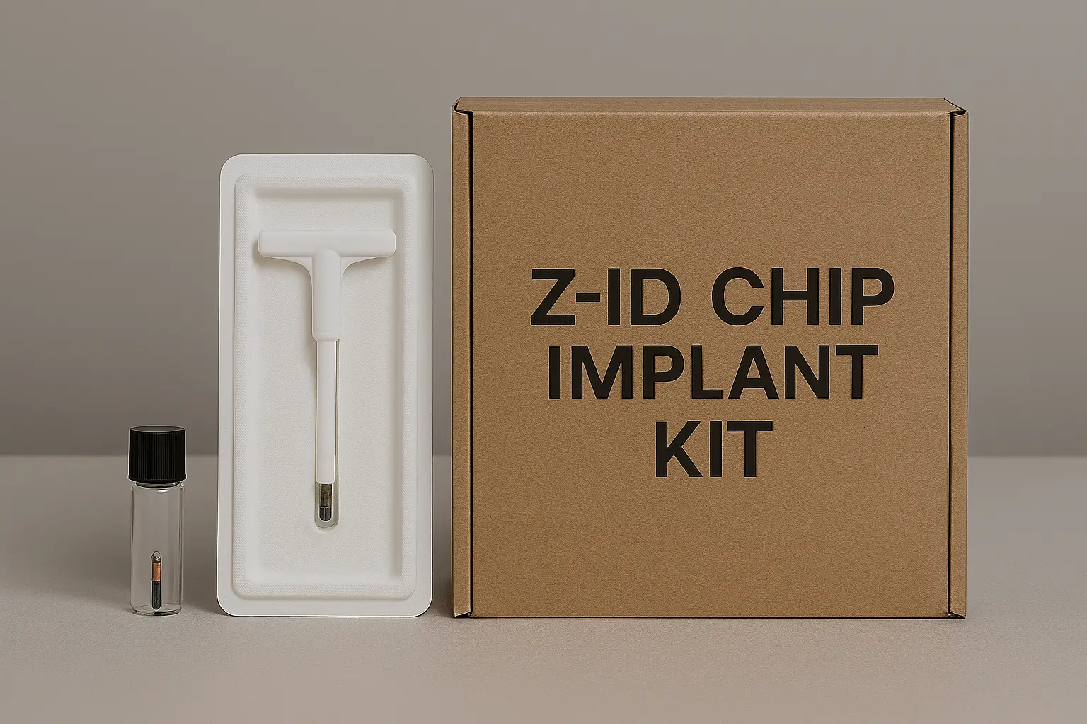 Subdermal biometric chip that syncs with MatchIQ™ AI to track emotional states, heart rate, and temperature. Includes sterile applicator, onboarding app, and privacy controls.