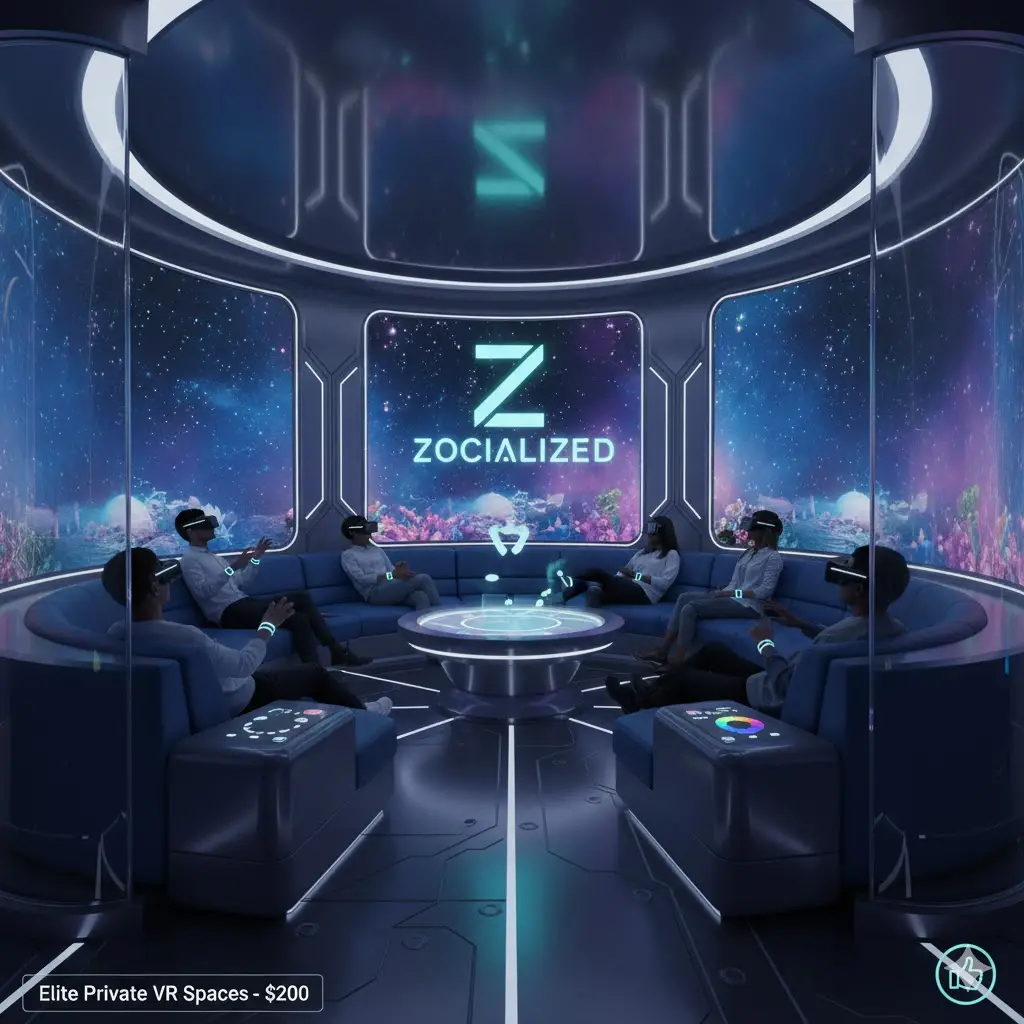 Host intimate virtual meetups in private luxury VR lounges, complete with interactive features like mood lighting, music customization, and themed environments.